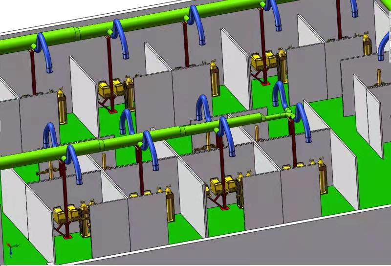 3、3米阿爾法柔吸臂,合理分配,布局美觀分組安裝處理焊接煙塵,每個(gè)柔吸臂口都有開關(guān),當(dāng)使用時(shí)可以打開,不使用時(shí)可以關(guān)閉。螺旋風(fēng)管組合合理,風(fēng)量壓力計(jì)算準(zhǔn)確。每臺風(fēng)機(jī)變頻控制,風(fēng)機(jī)安裝在實(shí)訓(xùn)室屋頂,并做遮風(fēng)擋雨消音防曬風(fēng)機(jī)房,噪音不得高于76分貝;