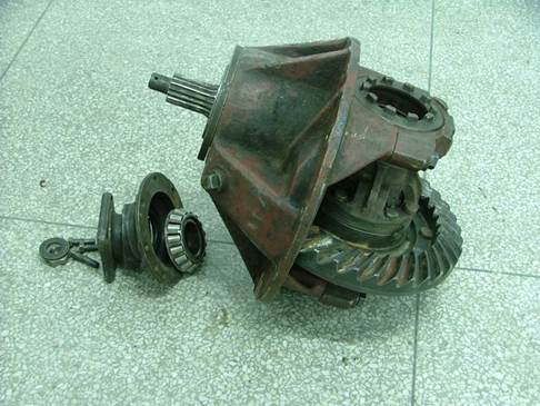 第四步:拆下主動(dòng)雙曲線齒輪連接凸緣及油封座、錐齒輪軸承座,拆下主動(dòng)雙曲線齒輪。