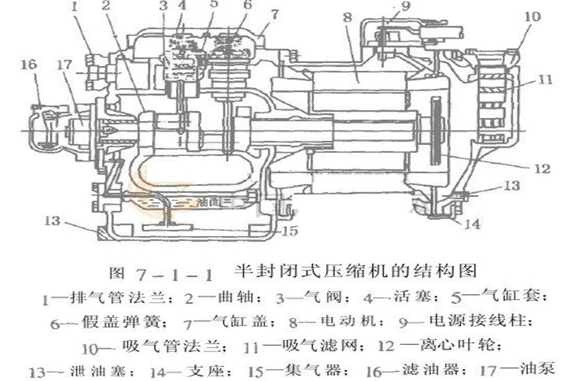 各類活塞式制冷壓縮機(jī)的拆卸工藝雖然基本相似,但由于結(jié)構(gòu)不同,所以拆卸的步驟和要求也略有不同,應(yīng)根據(jù)各類壓縮機(jī)的特點(diǎn)制訂不同的拆卸方法,下面以半封閉制冷壓縮機(jī)為例說明這種類型的制冷壓縮機(jī)拆卸方法和步驟。