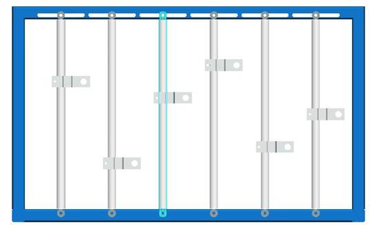 實驗臺機架如圖2所示:機架中有5根鉛垂的活塞桿,它們可沿X軸左右移動,固定靠六角頭螺釘和蝶型螺母固定。需移動時請先將蝶型螺母松開,雙手推動活塞桿.并盡可能使它保持垂直狀態(tài)。活塞桿上的滑塊可沿Z軸上下移動,用內六角螺釘將滑塊緊定在活塞桿上。(注意:在移動立柱或滑塊時需用直尺或卷尺量出它們的相對位置再把螺釘擰緊。)