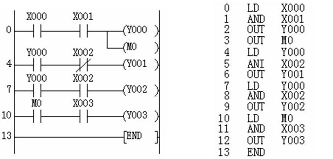 注:使用OR、ORI指令所作的并聯(lián)連接,原則上是與前述的LD、LDI連接,但在后述的ANB指令后,則可再在前面加1條LD或LDI指令連接。