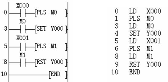 ●在下述程序示例中,X000一旦接通后,即使它斷開,Y000仍繼續(xù)動作。X001一旦接通時,即使它斷開,Y000仍保不被驅(qū)動。對于M、S也是一樣的。
