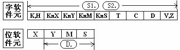 比較源S1與源S2的大小,目標(biāo)地址D輸出相應(yīng)的動作。大小比較是按代數(shù)形式進行的(-10<2)。所有源數(shù)據(jù)都被看成二進制值處理。目標(biāo)地址D假如指定M0,則M1、M2被自動占用。