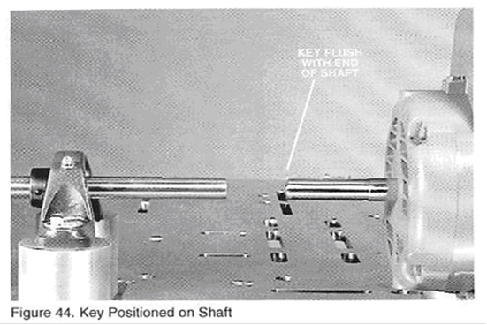 E. 將鍵放置在軸上的鍵槽內(nèi),其末端與電機(jī)軸的端部對(duì)齊,如圖44所示;
