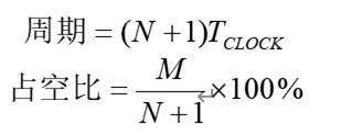 時(shí),通過(guò)改變N值,即可改變輸出的脈沖波的周期;改變M值,即可改變脈沖波的占空比。這樣輸出的脈沖波的周期和占空比分別為:
