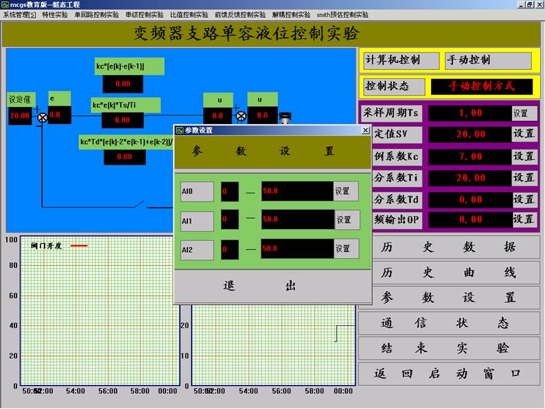 圖3.11 “變頻器支路單容液位控制實(shí)驗(yàn)”界面