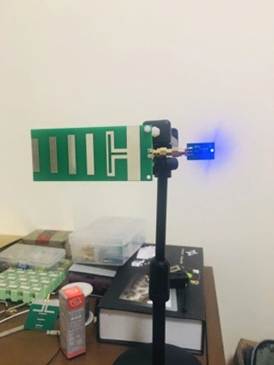 圖5垂直極化天線發(fā)射接收為蘭色和黃色LED燈