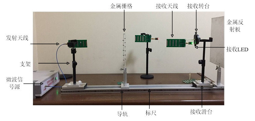 實驗平臺設(shè)有波長測量、功率檢波、電磁場極化等若干簡單又富有論證性的實驗。將實驗儀器的功率發(fā)射端加載到三種極化天線端口。將天線采集到的感生電流接入LED燈。把檢波天線放置在固定的位置以后,可以看到LED燈的明暗與極化方式有著對應(yīng)的關(guān)系。將發(fā)射天線的功率輸入天線,通過調(diào)整檢波天線的位置或者檢波天線的角度方向,觀察發(fā)光燈的明暗變化。這樣就可以直觀的感受到電磁波的分布參數(shù)、極化等豐富的概念。在整個實驗過程中,通過極其簡單的幾個操作,就可以將所學(xué)的抽象的知識,通過具象化的實驗來驗證清楚,進(jìn)一步提高了教學(xué)的效率。增加了學(xué)生對實驗的印象,提高了學(xué)生動手能力,深刻的將公式與現(xiàn)象結(jié)合起來,為以后的工作和學(xué)習(xí)提供了切實有效的經(jīng)驗。提升學(xué)生對電磁場與波的學(xué)習(xí)興趣,實現(xiàn)探究性學(xué)習(xí),創(chuàng)造性學(xué)習(xí)。