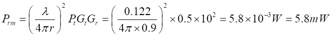 為接收功率,為發(fā)射和接收天線的增益,發(fā)射功率,R為收發(fā)距離。