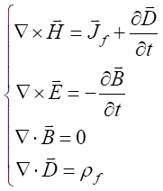 在理想介質(zhì)中,既沒有電荷,也沒有電流,所以理想介質(zhì)中的電磁場滿足無源的麥克斯韋方程組。無源無耗媒質(zhì)中電磁場滿足麥克斯韋方程: