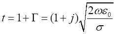 在第二種媒質(zhì)中,只有向正Z軸方向傳播的透射波,它的電場強(qiáng)度和磁場強(qiáng)度可表示為: