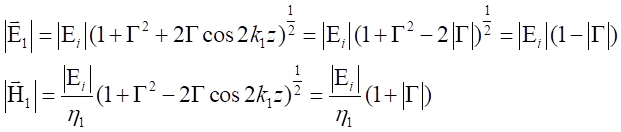 第一種媒質(zhì)中的合成波應(yīng)是入射波和反射波的迭加,所以其中總的電場強(qiáng)度和磁場強(qiáng)度為: