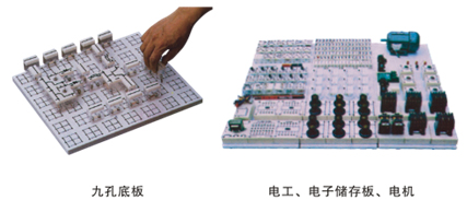 通用電工實驗臺具有較完善的安全保護措施,較齊全的功能。實驗桌中央配有通用電路板,電路板注塑而成,表面布有九孔成一組相互聯(lián)通的插孔,元件盒在其上任意拼插成實驗電路,元件盒盒體透明,直觀性好,盒蓋印有永不褪色元件符號,線條清晰美觀。盒體與盒蓋采用較科學(xué)的壓卡式結(jié)構(gòu),維修拆裝方便。元器件放置在實驗桌下邊左右柜內(nèi),大大提高了管理水平,規(guī)劃化程度,大大減輕了教師實驗準備工作。