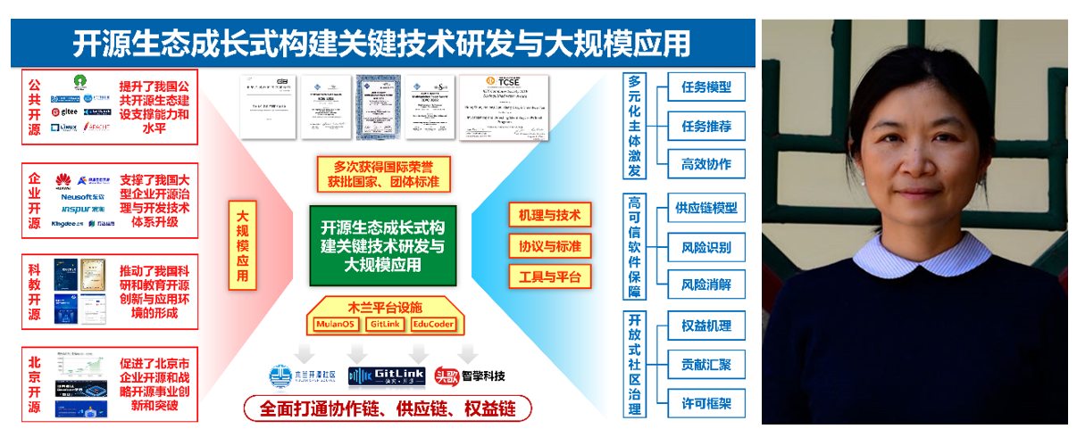在數(shù)字經(jīng)濟(jì)時(shí)代,開源生態(tài)已成為全球軟件創(chuàng)新的核心基礎(chǔ)設(shè)施和戰(zhàn)略制高點(diǎn)。作為數(shù)字中國建設(shè)的戰(zhàn)略性抓手,發(fā)展自主可控的開源體系既是突破關(guān)鍵軟件“卡脖子”困境的必由之路,更是參與全球科技治理的重要路徑。目前,全球?qū)﹂_源生態(tài)機(jī)理尚缺乏全局認(rèn)知,我國開源建設(shè)還面臨國外管制風(fēng)險(xiǎn)等外部挑戰(zhàn)。構(gòu)建起立足中國、輻射全球的健康、可持續(xù)開源生態(tài)刻不容緩。針對(duì)開源生態(tài)建設(shè)面臨的重大挑戰(zhàn),本項(xiàng)目系統(tǒng)揭示開源生態(tài)形成機(jī)理,突破多元化主體激發(fā)、高可信軟件保障、開放式社區(qū)治理等關(guān)鍵技術(shù),建立貫通參與主體高效協(xié)作鏈、開源軟件可信供應(yīng)鏈以及社區(qū)治理共贏價(jià)值鏈的開源生態(tài)成長(zhǎng)式構(gòu)建技術(shù)體系。牽頭建立中國主導(dǎo)、全球首個(gè)國際通用中英文雙語開源許可證以及我國首個(gè)開源國家標(biāo)準(zhǔn),木蘭寬松許可證被全球超33萬開源項(xiàng)目選用,為我國開源生態(tài)可持續(xù)提供法理基礎(chǔ)。主導(dǎo)建成融合型開源生態(tài)基礎(chǔ)設(shè)施MulanPlatform,深度賦能OpenHarmony、OpenEuler等基礎(chǔ)軟件根社區(qū)生態(tài)建設(shè)與治理。相關(guān)成果服務(wù)超過1200萬用戶、2800萬代碼倉,開源教學(xué)覆蓋超1000所高校,在公共開源、產(chǎn)業(yè)開源和科教開源等領(lǐng)域取得顯著社會(huì)和公益效益,為我國乃至全球開源生態(tài)可持續(xù)提供理論、技術(shù)和實(shí)踐支持。