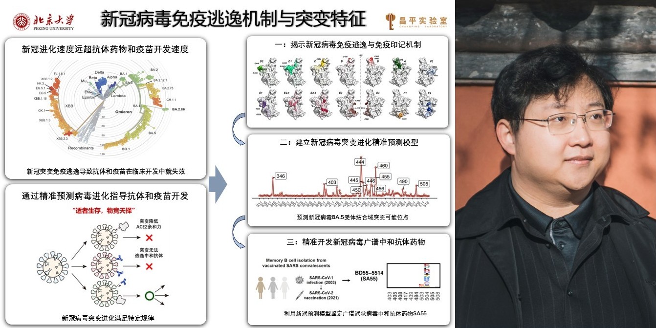 新冠病毒持續(xù)變異,對(duì)人群免疫屏障造成嚴(yán)峻挑戰(zhàn),導(dǎo)致突破感染和再感染頻發(fā)。因此,新冠病毒變異株的免疫逃逸能力及其機(jī)制亟待研究闡明,具有強(qiáng)抗突變能力的廣譜抗體和疫苗亟待研制應(yīng)用。項(xiàng)目團(tuán)隊(duì)圍繞新冠體液免疫響應(yīng)特征和新冠突變免疫逃逸機(jī)制、新冠病毒免疫逃逸突變預(yù)測(cè)、新冠廣譜中和抗體開發(fā)展開了系統(tǒng)研究,取得了一系列創(chuàng)新成果: