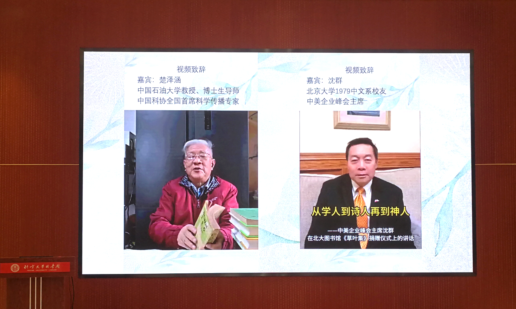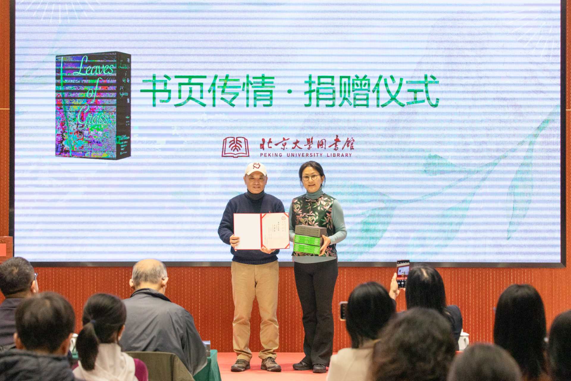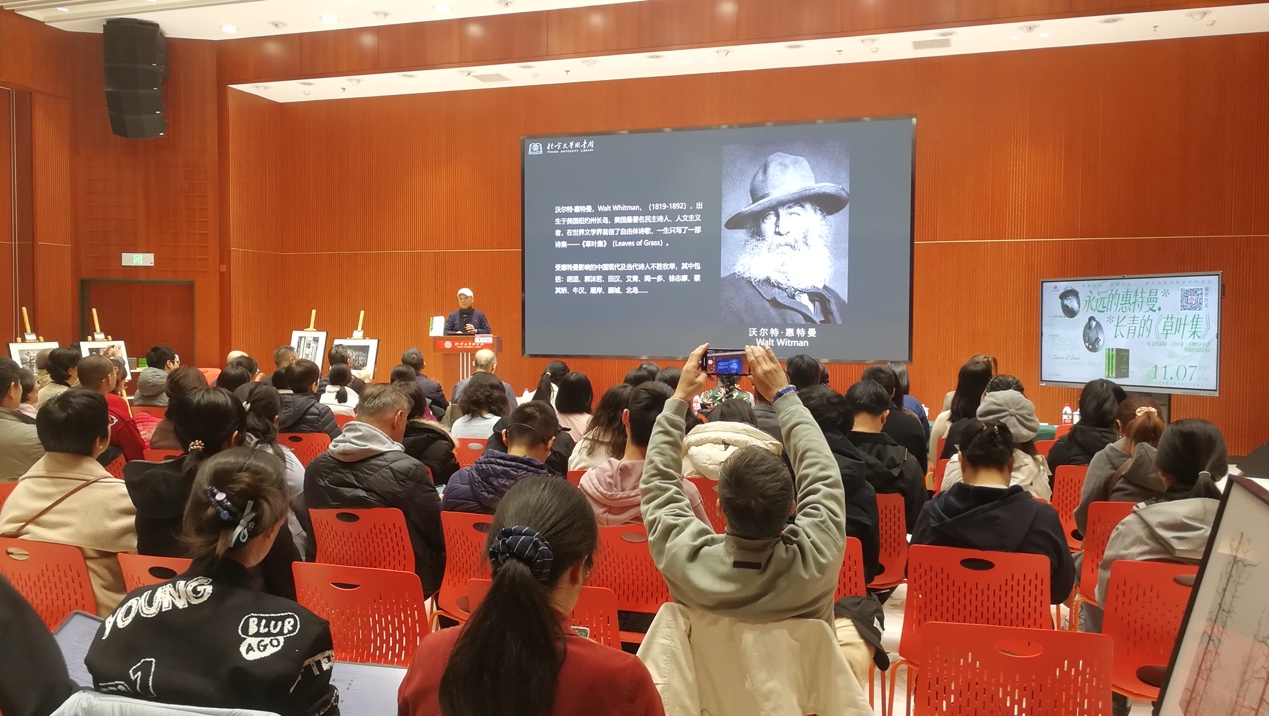 2025年11月7日下午,由北京大學圖書館、校友工作辦公室、校友會與人民文學出版社聯(lián)合主辦的“新書領讀:永遠的惠特曼,長青的《草葉集》——新書捐贈分享會暨插圖攝影展”活動在北京大學圖書館藝術鑒賞廳舉行。