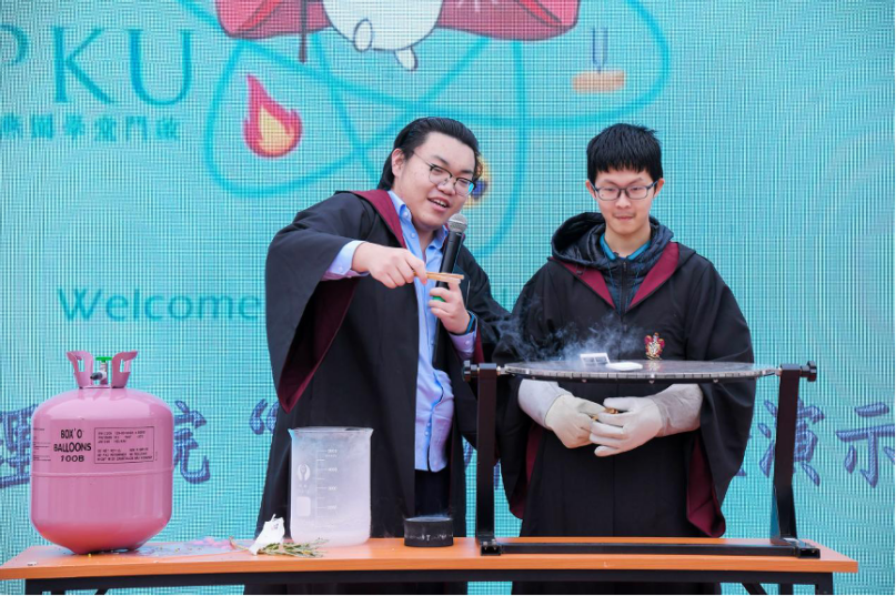 “挑戰(zhàn)杯”學(xué)術(shù)文化月科創(chuàng)學(xué)術(shù)成果展活動上同學(xué)演示超導(dǎo)磁懸浮實驗
