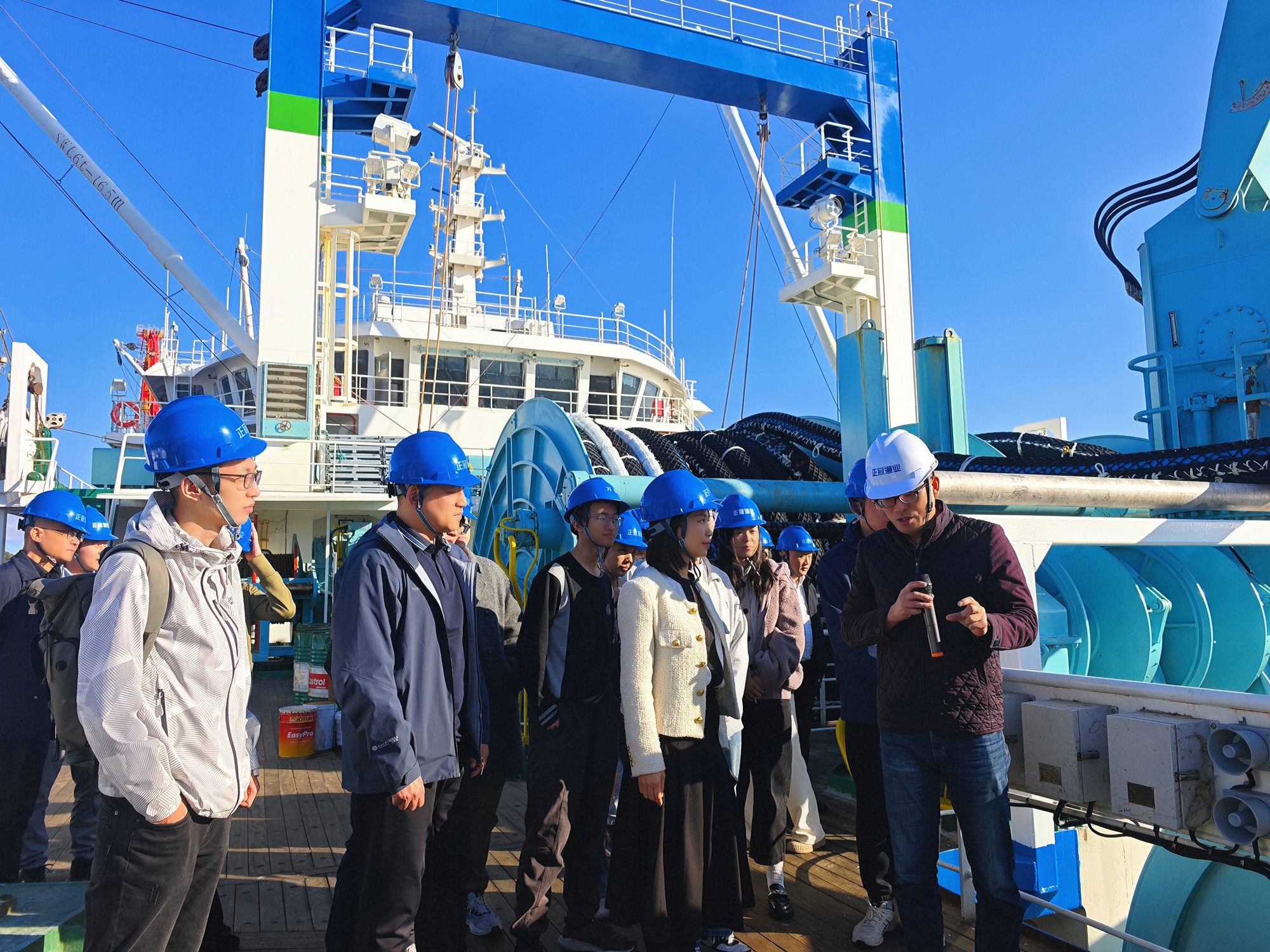 11月21日下午,實踐團赴馬尾船政工業(yè)園區(qū)、福州(連江)國家遠洋漁業(yè)基地進行參訪交流。在船政廠船塢內(nèi),7500車位LNG雙燃料滾裝船等多種高端船舶正緊張建造,支撐著深遠海養(yǎng)殖、海上風(fēng)電等產(chǎn)業(yè)集群發(fā)展。從百年船政開創(chuàng)中國近代造船業(yè),到如今打造“萬噸巨輪”的硬核實力,師生們深切感悟到民族工業(yè)從“跟跑”到“并跑”的奮進歷程,以及裝備制造背后的“大國重器”擔(dān)當(dāng)。實踐團來到福州馬祖產(chǎn)業(yè)合作園區(qū),深入了解園區(qū)在深化兩岸融合、構(gòu)建現(xiàn)代化海洋產(chǎn)業(yè)體系方面的創(chuàng)新實踐。師生們登臨中國自主設(shè)計建造的最大南極磷蝦 專業(yè)捕撈加工船“福遠漁9199”輪,實地考察其先進的連續(xù)泵吸捕撈系統(tǒng)和自動化加工生產(chǎn)線,切身感受海洋裝備制造與遠洋漁業(yè)領(lǐng)域的創(chuàng)新活力,對“向海圖強”戰(zhàn)略在地方的生動實踐有了更直觀的認識。