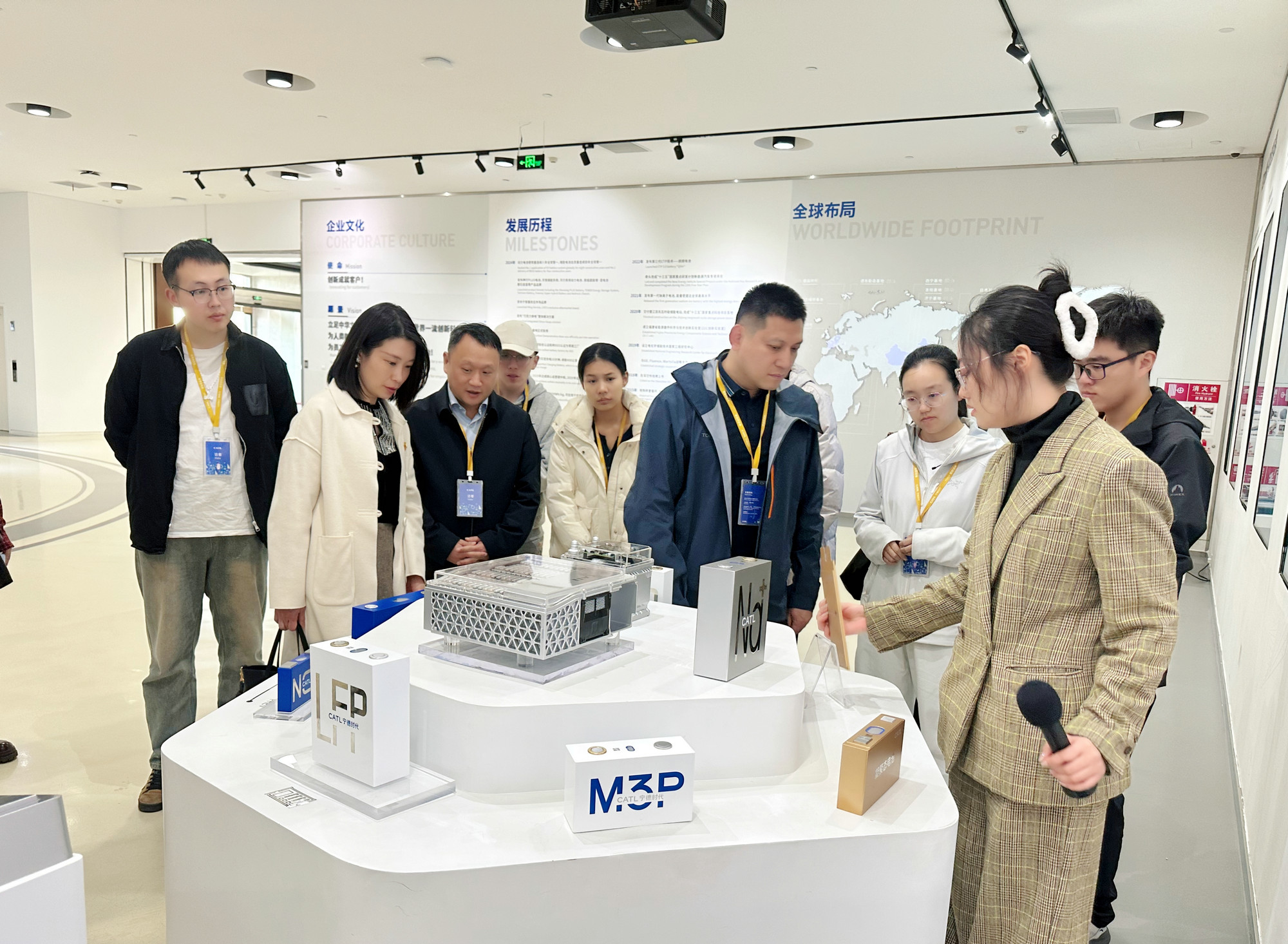 講解員介紹寧德時代電池的創(chuàng)新性成果