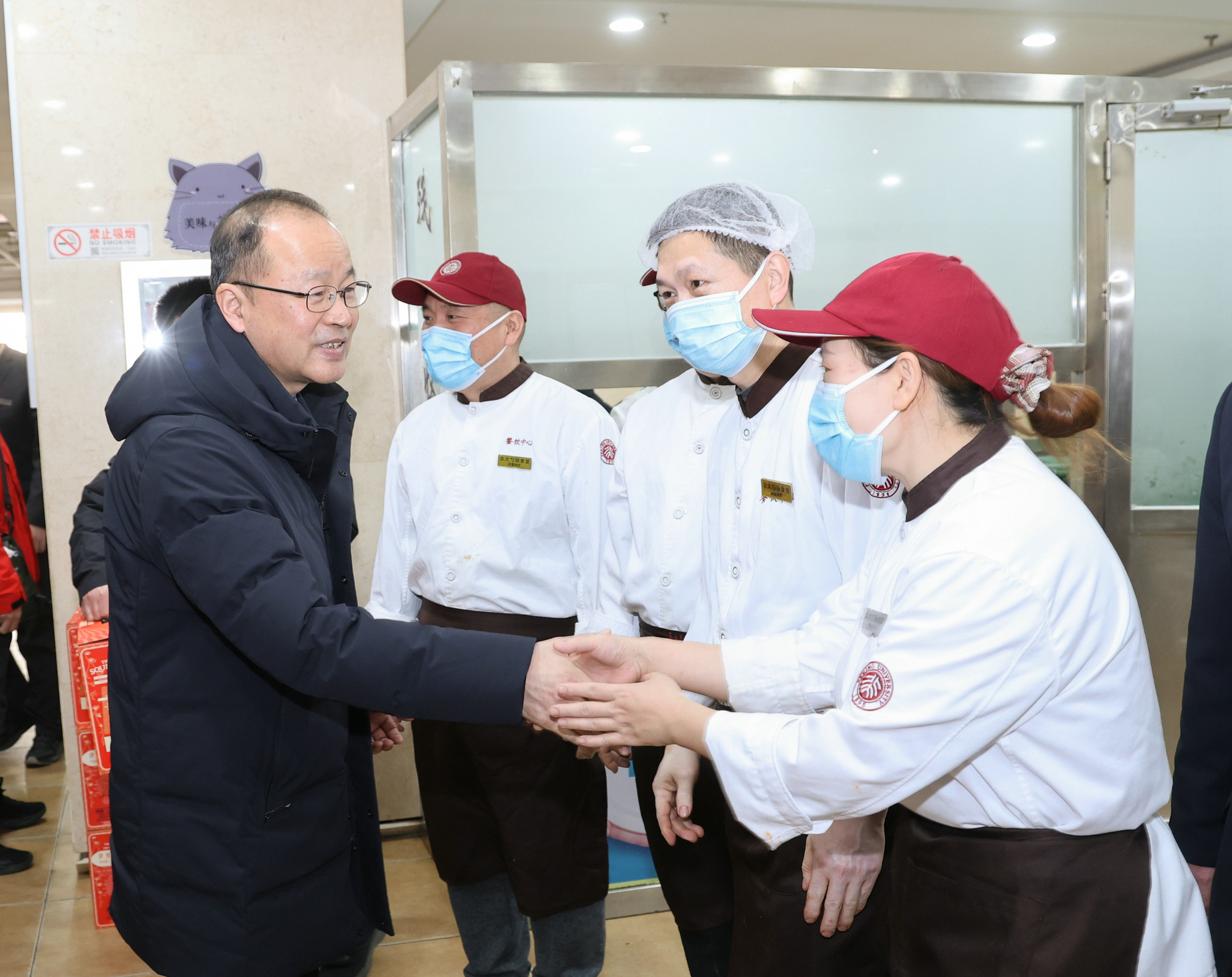 2月16日除夕當天,何光彩一行先后來到東南門保安亭、中關(guān)新園和園餐廳、鍋爐房、43樓學生宿舍和勺園食堂,看望慰問堅守一線的教職工和留校過年的學生。在東南門,何光彩慰問正在執(zhí)勤的保安員,勉勵大家繼續(xù)發(fā)揚優(yōu)良作風,用心守護好校園平安。在中關(guān)新園和園餐廳,何光彩與留學生們共同參與“春庭集福·藝趣游園”活動,大家寫福字、包餃子,在歡聲笑語中感受濃濃的中國年味。在鍋爐房,何光彩慰問值班值守的工作人員,感謝他們?yōu)楸U闲@平穩(wěn)運行作出的貢獻。在43樓學生宿舍,何光彩與正在寫福字、剪窗花的同學們交談,詢問大家假期學習生活情況,并看望慰問宿舍工作人員。在勺園食堂,何光彩慰問忙碌在一線的食堂職工,叮囑相關(guān)部門認真做好服務(wù)保障工作,確保全校師生度過一個平安、祥和、溫暖的春節(jié)。