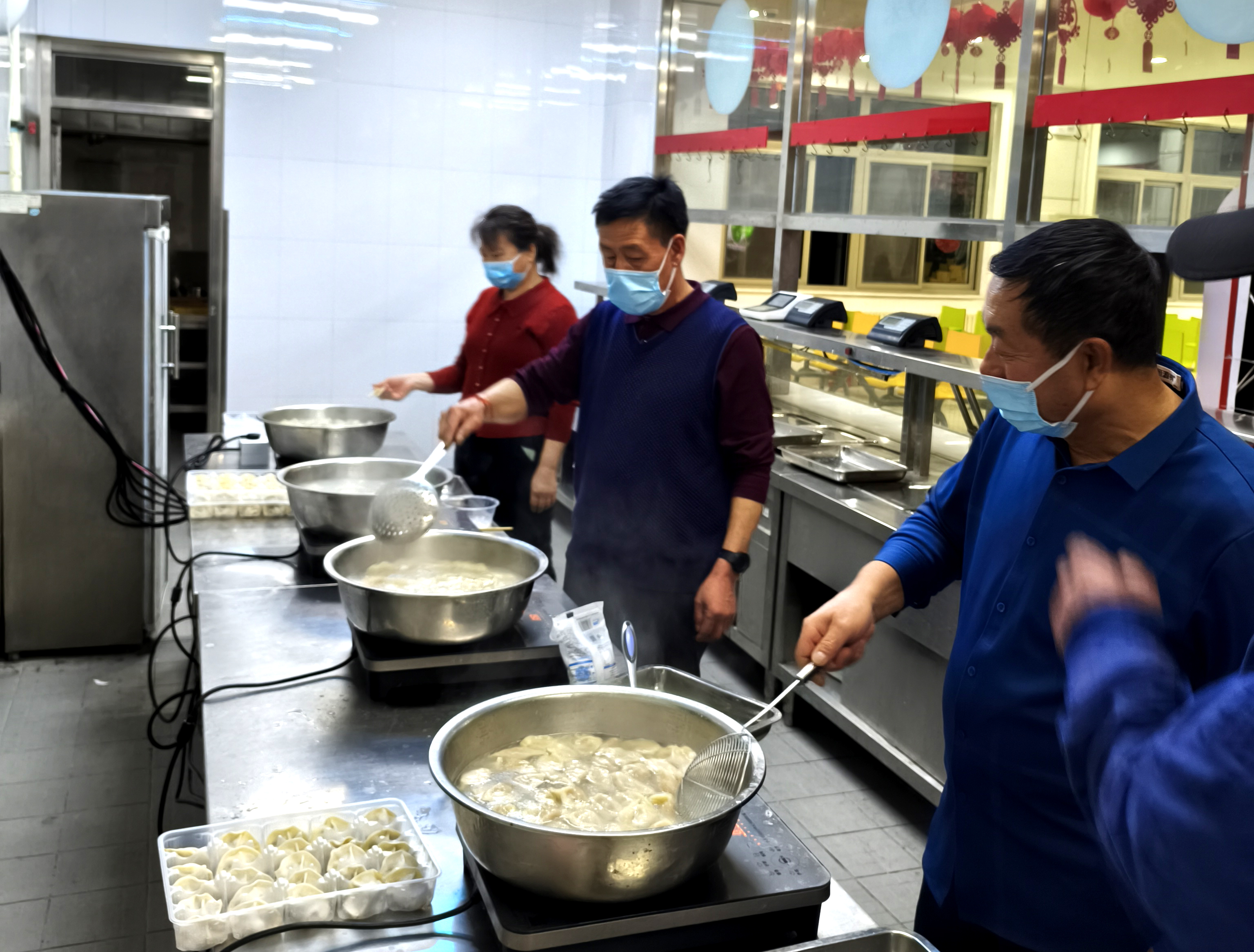當(dāng)晚,圓明園校區(qū)餐廳內(nèi)暖意融融。30余位寒假期間堅(jiān)守崗位的運(yùn)行保障系統(tǒng)職工陸續(xù)到來(lái),大家圍坐在一起,嗑瓜子、吃水果,你一言我一語(yǔ)地話著家長(zhǎng)里短,歡聲笑語(yǔ)此起彼伏。校區(qū)辦公室精心準(zhǔn)備了熱氣騰騰的餃子,大家邊吃邊觀看春節(jié)聯(lián)歡晚會(huì),時(shí)不時(shí)有老師獻(xiàn)歌一首,其樂(lè)融融。后勤工會(huì)特別準(zhǔn)備了福字貼,大家踴躍執(zhí)筆,在紅紙上揮毫潑墨,一筆一畫(huà)寫(xiě)下對(duì)新年的美好期許。寫(xiě)好的福字被小心收好,準(zhǔn)備帶回裝飾各自的溫馨小家,大家來(lái)自五湖四海,齊聚校區(qū),互致新春祝福,在喜慶祥和的氛圍中迎接丙午馬年的到來(lái)。