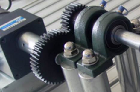 B、將一對斜齒輪分別緊固在兩傳動軸上,移動軸承支架對齊兩斜齒輪。如果高度不合適可墊墊圈調(diào)整。