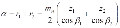 如圖4-2所示,過P點作交錯軸斜齒輪副軸線的公垂線, 它的長度就是交錯軸斜齒輪傳動的中心距: