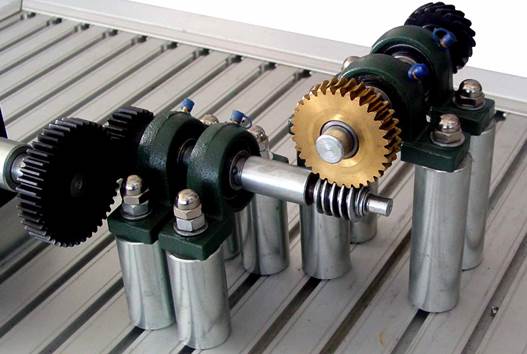電機一臺、電機座、標(biāo)準(zhǔn)蝸輪蝸桿一對、軸承座、立柱、傳動軸(φ20活塞桿)、T型螺釘、M12螺母、游標(biāo)卡尺一把、直尺一把(20cm)、米尺一把、轉(zhuǎn)速傳感器、各種安裝工具等。
