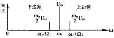 調(diào)幅的過程就是在頻譜上將低頻調(diào)制信號(hào)搬移到高頻載波分量兩側(cè)的過程。在單頻調(diào)制時(shí),其調(diào)幅波的頻帶寬度為調(diào)制信號(hào)頻譜的兩倍,即