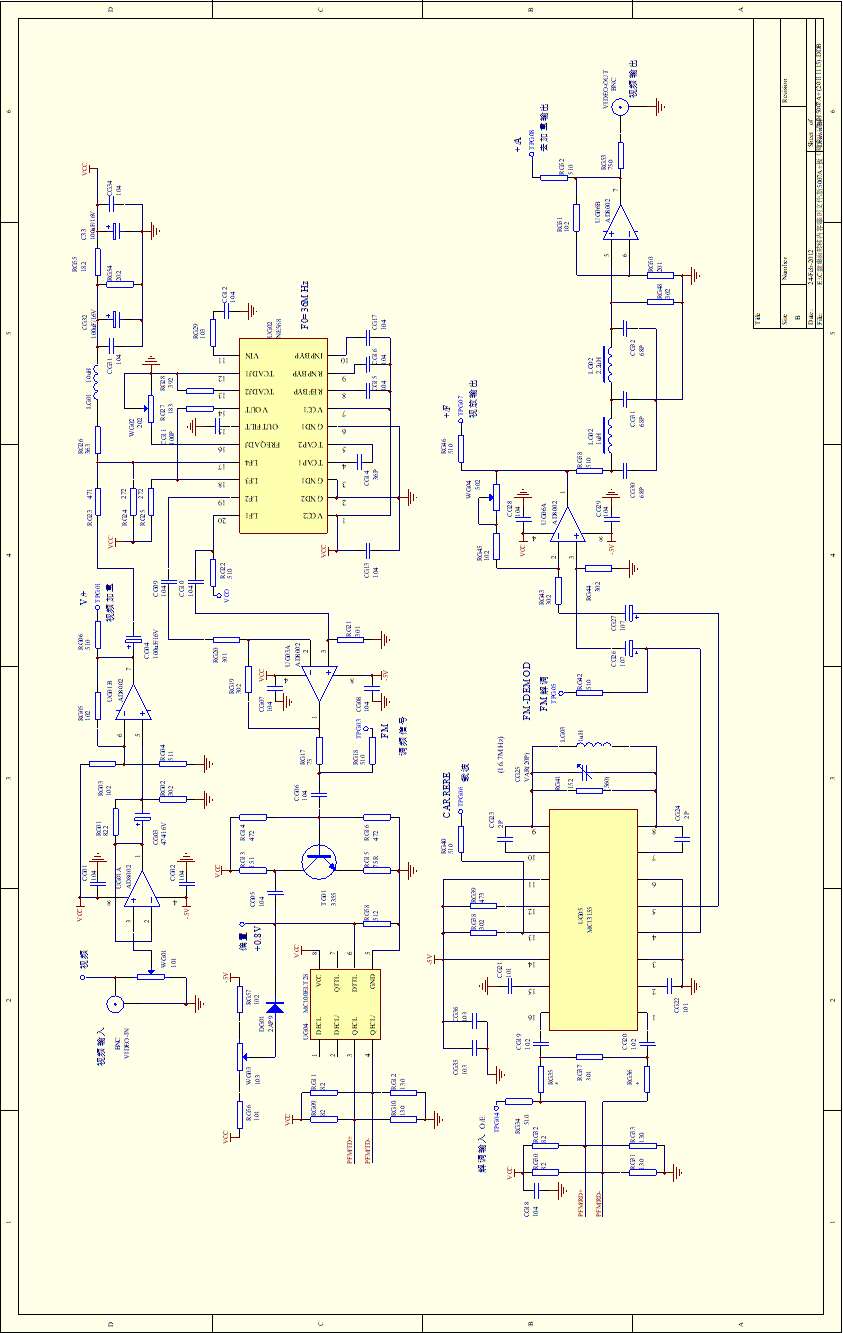 電視信號FM調(diào)制解調(diào)模塊的完整電路原理圖見下頁。