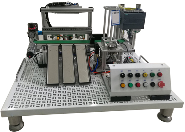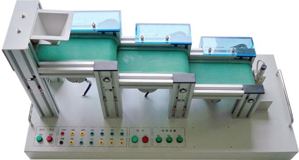 | 1.16 | 三級傳送帶控制模型 | 模型主要由漏斗上料裝置、三級傳送帶、直流電機、電磁鐵、電容傳感器、開關、指示燈、鋁型材框架、安裝底板、手柄等組成,通過PLC編程,可完成自動送料裝車系統(tǒng)的模擬控制。 |