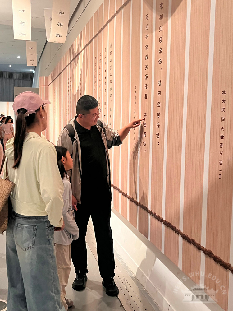 恰逢暑期,展廳成為全國各地中小學(xué)生研學(xué)的生動(dòng)課堂。據(jù)不完全統(tǒng)計(jì),展覽共接待研學(xué)團(tuán)隊(duì)100余支。青少年在大學(xué)生志愿者帶領(lǐng)下,認(rèn)真聆聽簡牘背后的故事,于古今對話中體悟中華傳統(tǒng)文化的深厚底蘊(yùn),使展覽真正成為一堂沉浸式的歷史文化實(shí)踐課。
