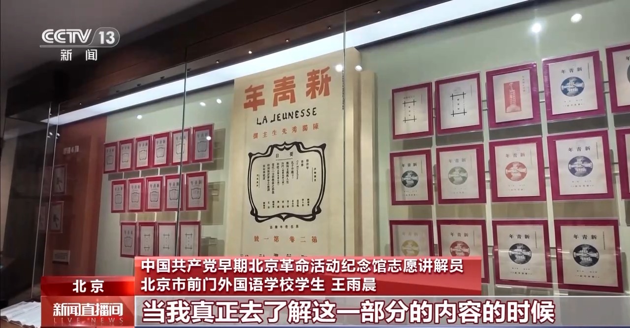 中國共產(chǎn)黨早期北京革命活動紀(jì)念館志愿講解員 北京市前門外國語學(xué)校學(xué)生 王雨晨:像我剛才介紹到的銅燒水壺,毛澤東閱讀的《明恥篇》批注過的封面,《新青年》的一些展品,當(dāng)我真正去了解這一部分的內(nèi)容的時候,發(fā)現(xiàn)每一件文物都有自己背后的故事。需要把這種精神傳播給更多的人,讓更多人去了解這段歷史。