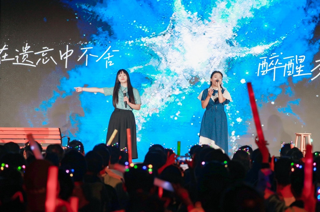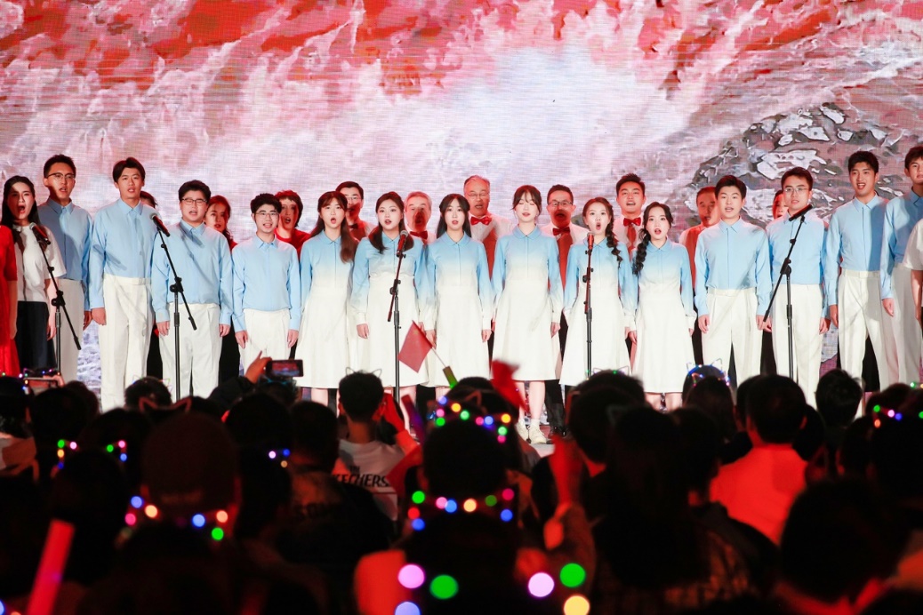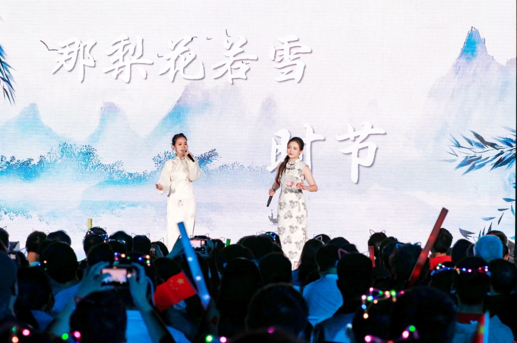 青春歌曲和經(jīng)典曲目的薈萃交融:《青春大概》《夜空中最亮的星》或青澀懵懂,或溫柔堅定,展示了追夢路上永不服輸?shù)尿湴僚c勵志,觀眾們一起揮舞手中的熒光棒、跟隨著歌手哼唱,倍感幸福充實(shí)!督裉臁贰洞和パ贰缎腋?燔嚒返冉(jīng)典歌曲更承載著北大學(xué)子對音樂與美的熱忱追求,為師生帶來一場視聽盛宴。