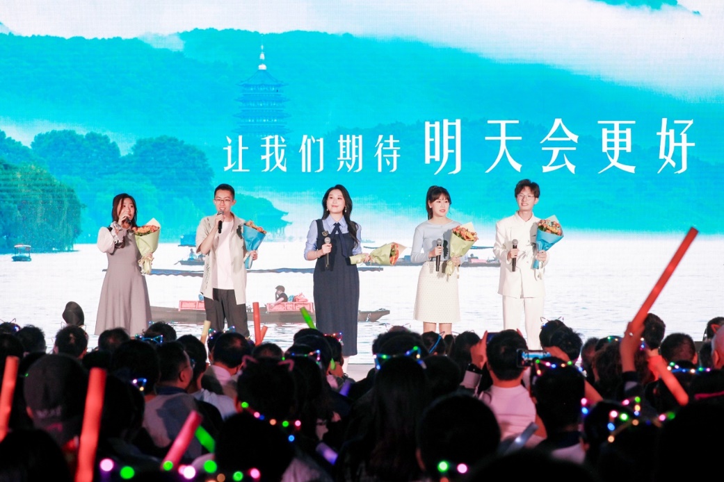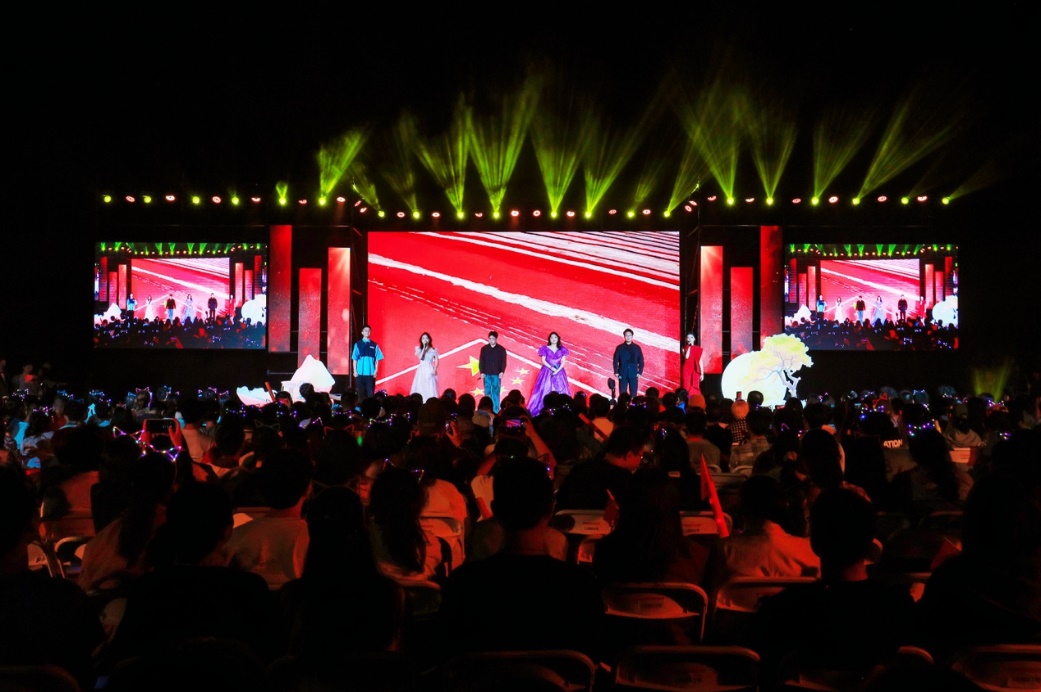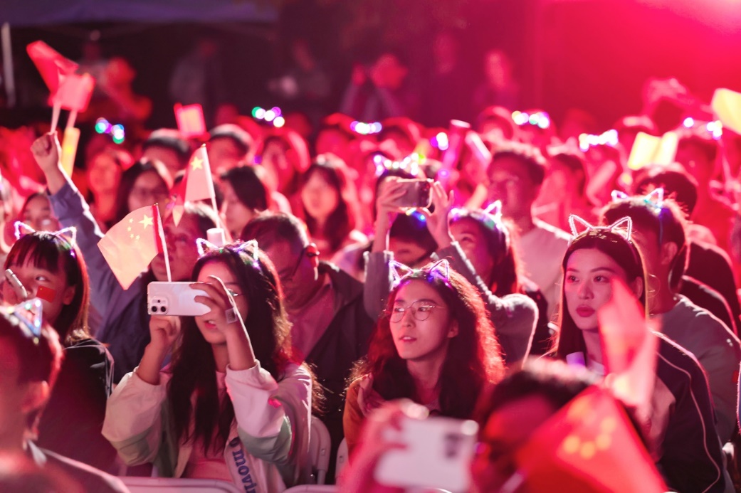 十佳歌手聯(lián)袂獻(xiàn)唱的《我愛你中國》向祖國送出最深情的告白,用歌聲獻(xiàn)禮祖國華誕。大屏幕上一幅幅中國壯麗風(fēng)光、建設(shè)成就和人民幸福生活的影像徐徐展開,與歌聲交織成一曲動人的視聽交響。 “我愛你中國,心愛的母親”唱響時,全場觀眾深受感染,情不自禁地起身揮動手中的國旗,一同加入合唱。霎時間,草坪化為一片涌動的紅色海洋,激昂的歌聲與澎湃的激情交織,將晚會現(xiàn)場化作一堂生動而深刻的愛國主義課堂。
