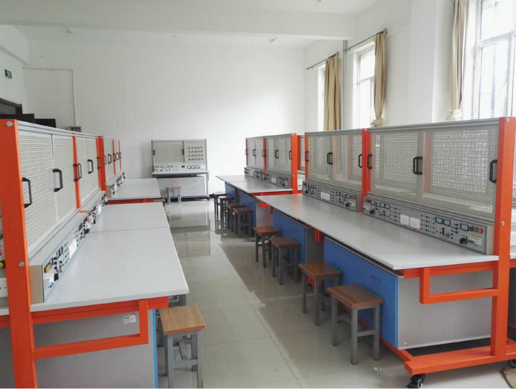 2、實訓(xùn)桌桌面采用25mm麻灰色高密度層壓板封邊特制,有效提高絕緣等級;實驗桌底部裝有至少4個導(dǎo)向輪,方便實訓(xùn)臺架移動;