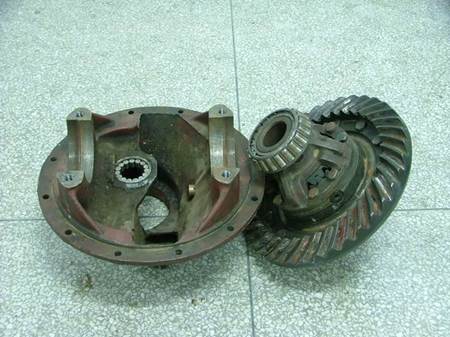 第五步:拆下從動(dòng)雙曲線齒輪軸承蓋,卸下從動(dòng)雙曲線齒輪總成,旋下差速器殼螺絲分解差速器。