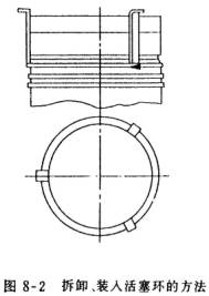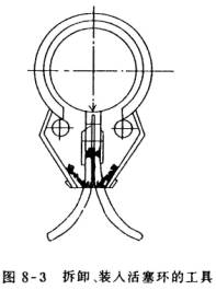 (3) 用專用工具拆活塞環(huán)。見圖8-3。