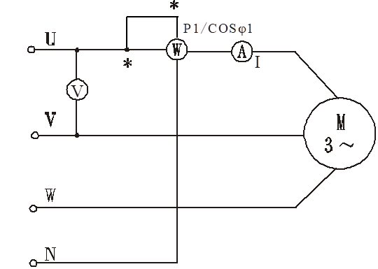 (2)用單瓦特表法測三相電路的功率,測量線路接線如下圖所示,所測三相電動機總功率為P=3·P1。