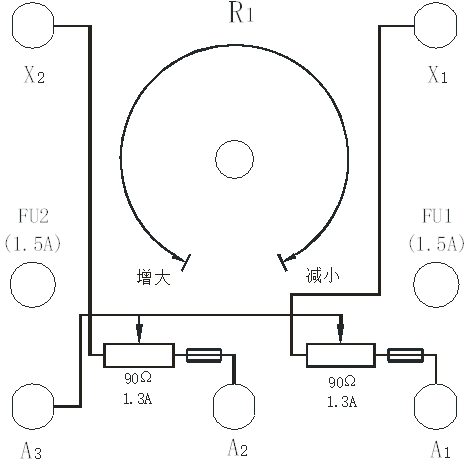 由于實驗的需要,變阻器除了做可變電阻使用外,還可采用電位器接法做分壓器用。例如他勵直流發(fā)電機勵磁電壓調節(jié)就是采用電位器接法。做分壓器時可以單只使用,也可以并聯(lián)使用。分壓器接法為: 固定電壓接在A2和X2之間,而可變電壓可以從A3和A2(或A3和A4)端引出。