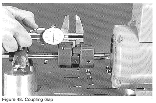 13.調(diào)整兩半聯(lián)軸器間的空隙為13mm,如圖48所示,然后擰緊電機(jī)裝配螺栓