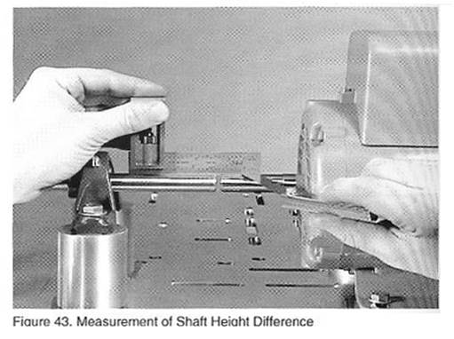 力時(shí),葉片的厚度合適),葉片的厚度就是兩軸的高度差,如果軸的高度差在0.25~0.4mm的范圍內(nèi),進(jìn)入下一步驟,否則重新調(diào)整軸承支架的高度直到滿(mǎn)足要求。
