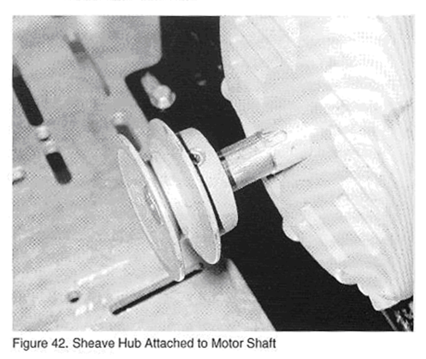 J.   將帶輪裝在電機軸上(輕輕推入),直到帶輪的端面與軸的頂端齊平,如圖42所示;