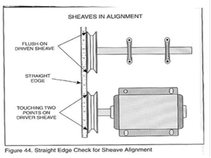 圖45所示。如果主動帶輪沒有任何部分與米尺接觸上,則說明兩軸不平行或是帶輪未對準(zhǔn)。