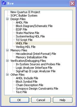 1)選擇QUARTUSII軟件中的File>New命令,出現(xiàn)New對(duì)話框。如圖4-2-2所示。