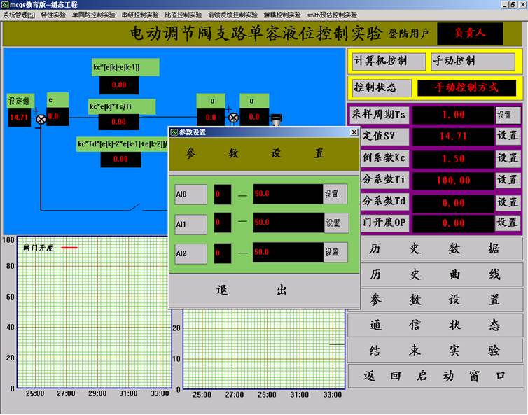 圖3.10 “電動閥支路單容液位控制實驗”界面