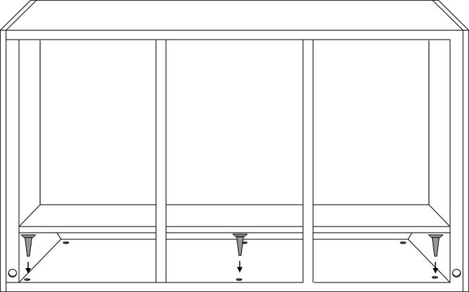 ② 將桌體翻轉(zhuǎn),圍板與萬向輪一同安裝到實(shí)驗(yàn)臺桌身,注意孔位對齊。按照右圖所示