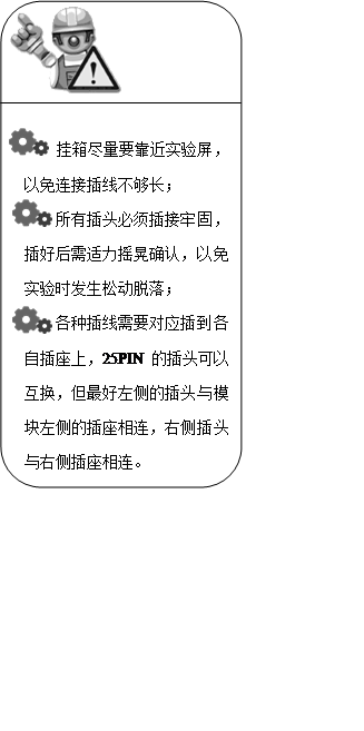 8、 模塊安放到實(shí)驗(yàn)機(jī)頭上。將①中已經(jīng)連接好的實(shí)驗(yàn)插線整理好,將長出的部分合理放入機(jī)頭內(nèi)側(cè),以免模塊掛上時壓住插線。