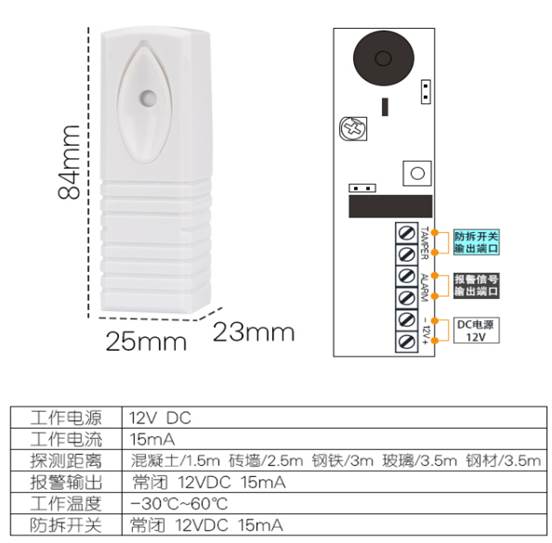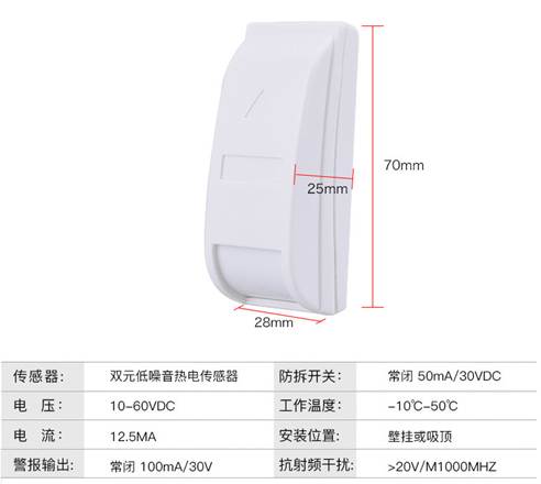 圖4-3  幕簾紅外傳感器參數(shù)表