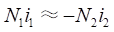 式(3-13)表明變壓器一、二次繞組的電流之比與它們的匝數(shù)成反比。其中,一次繞組的電流由變壓器所接負(fù)載的電流決定。